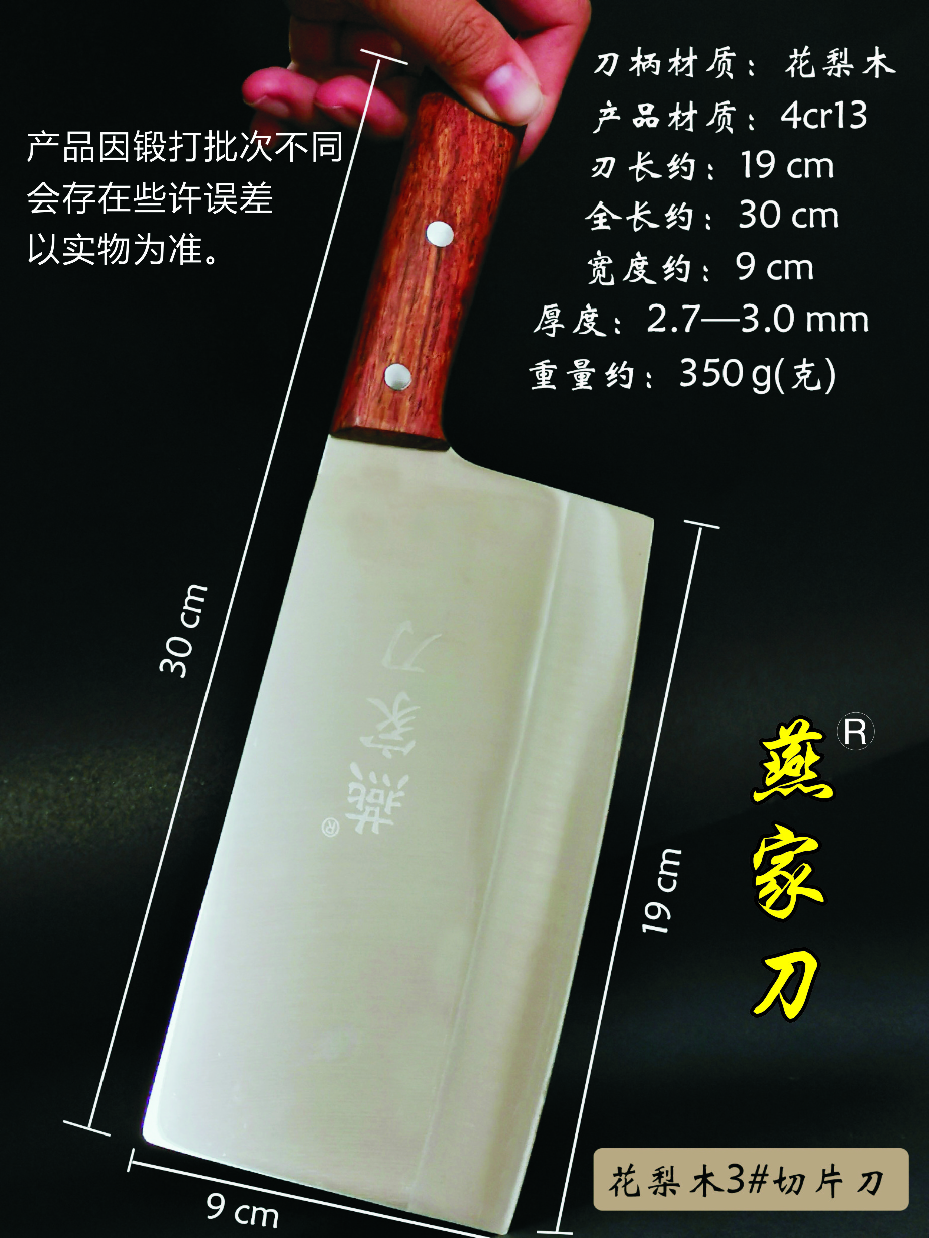 樂(lè)山燕家刀具有限公司(公司前身為燕佳鐵匠鋪),公司坐落于美麗的佛都之鄉(xiāng)樂(lè)山嘉州,在全國(guó)各地有上千家代理經(jīng)銷點(diǎn),公司專業(yè)銷售、設(shè)計(jì)、制作各類刀具。秉承一貫鍛造三精要求,即選料精、用料精、工藝精。所選材料全部產(chǎn)自滇東鐵礦優(yōu)產(chǎn)區(qū)。本品牌刀具堅(jiān)持千挑萬(wàn)選為材,千錘百煉為刀的手工鍛造工藝宗旨。具有鋒利耐磨、持久耐用,用料上乘,硬度高、韌度強(qiáng)的特點(diǎn)!